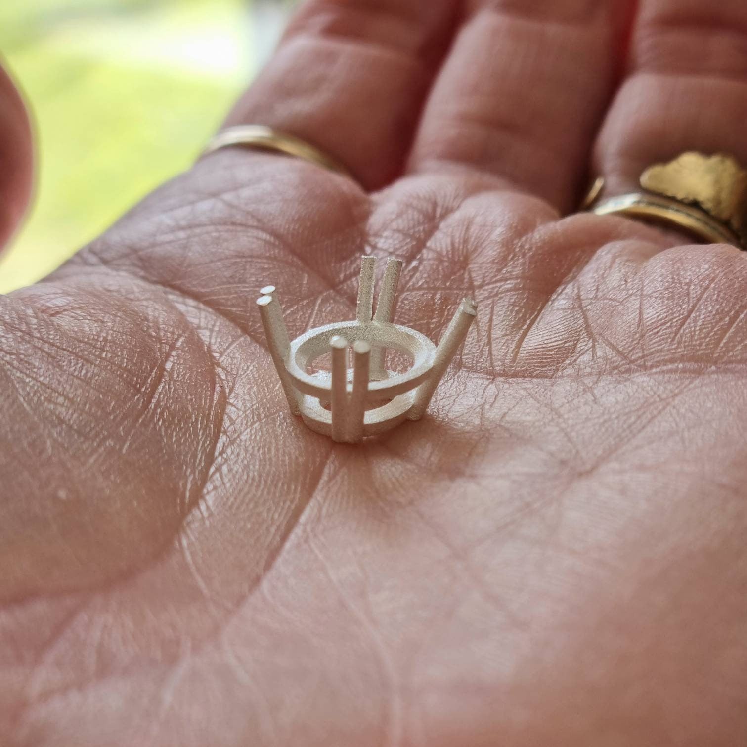 These 8 claw settings are for 12x10mm stones and being claw settings may be adjustable to slightly different measurements. The classic oval claw settings can be used for all sorts of things, rings, pendants, earrings or just about anything you can think of! remove the lower gallery to make a low profile rose cut or cabochon setting.