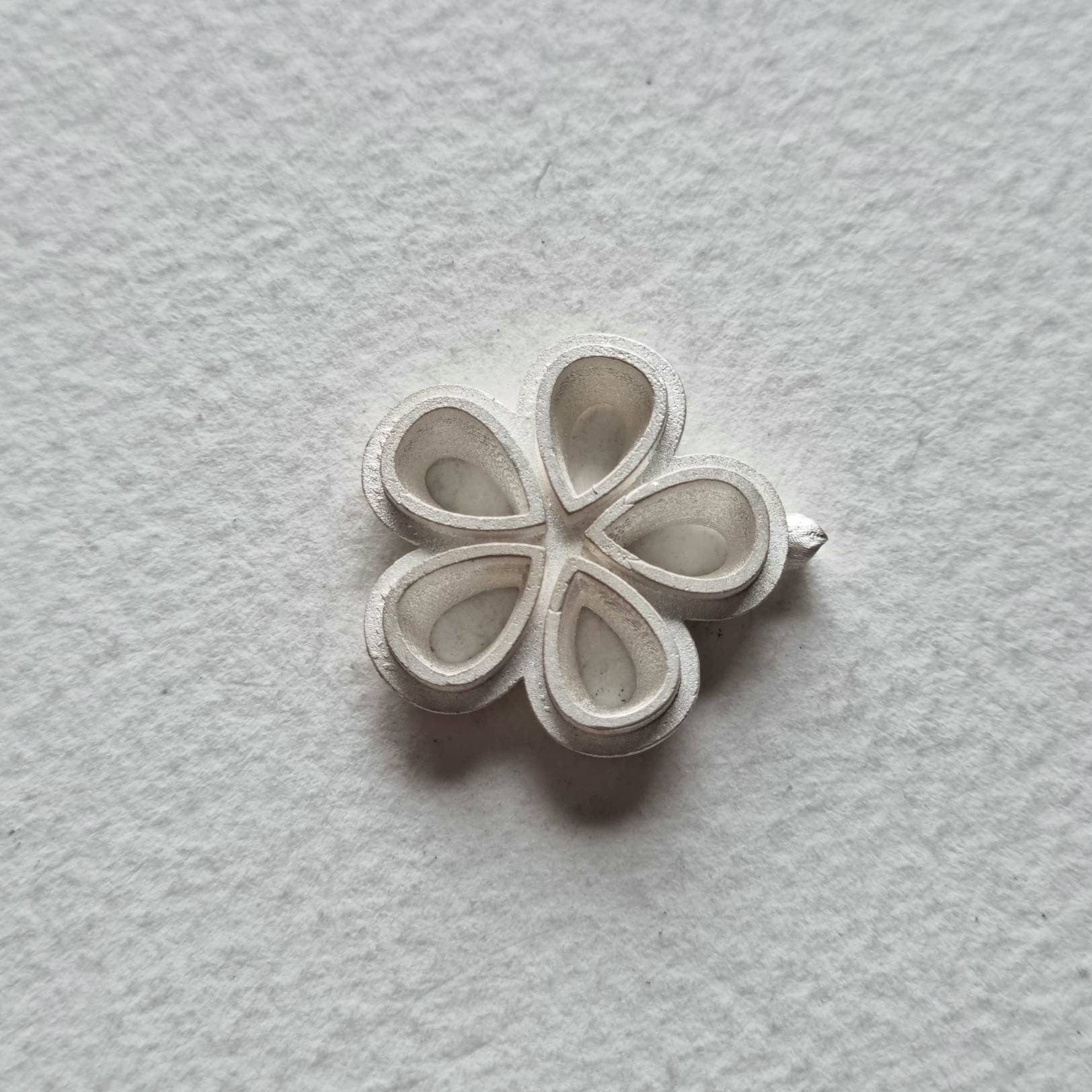 This flower shaped pear multi stone setting works as just about anything. It can be drilled to accomodate a chain. Or add a bail. Solder on a band to create a statement ring or pin to create a brooch or earwires to make earrings. I have found it best to leave the cast texture on the ledge, which contrasts well with a polished setting wall. The underside will polish up beautifully too.
