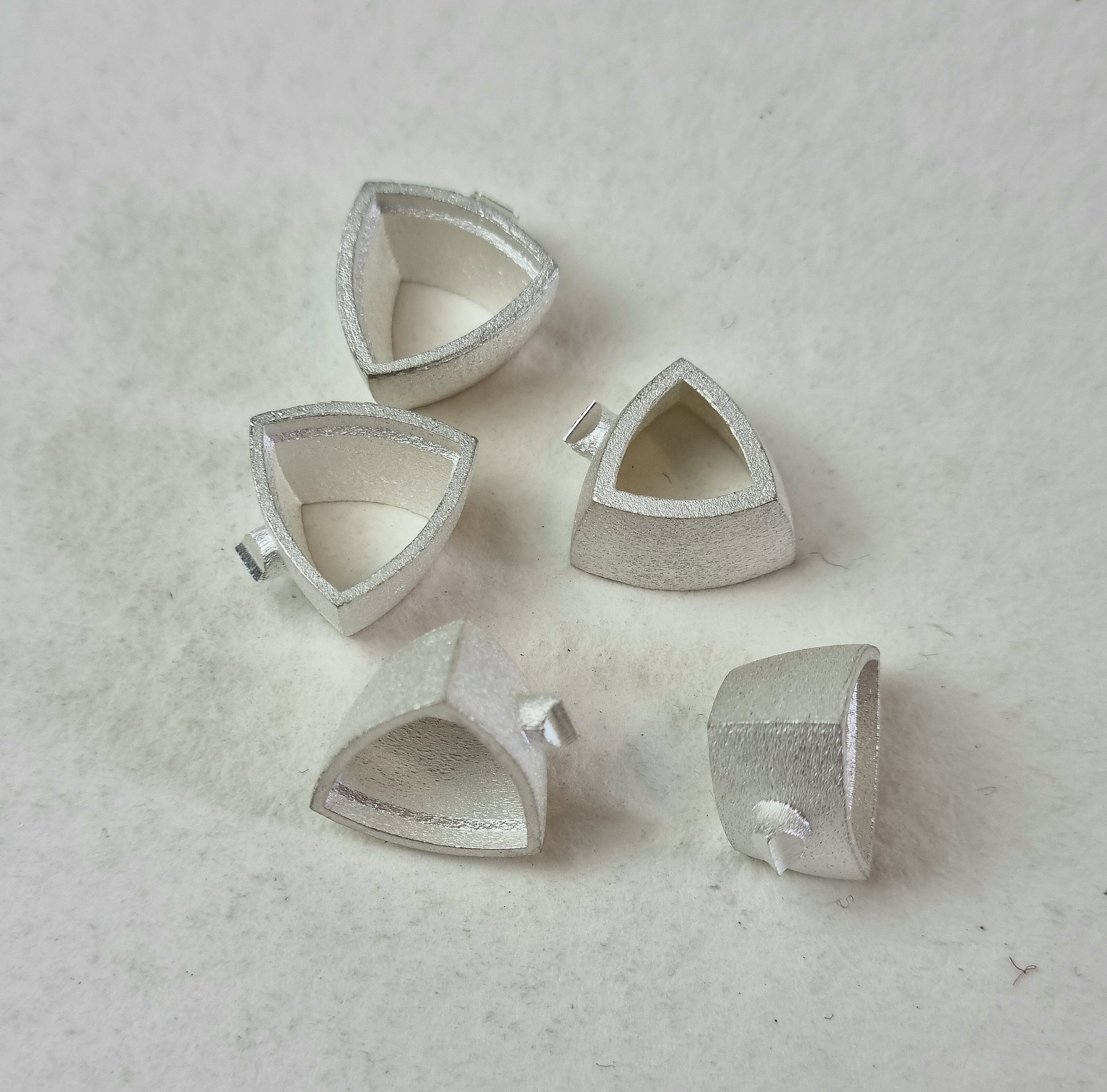 9.5mm 3 collet setting for faceted, rose cut or Cabochon trillion stones.